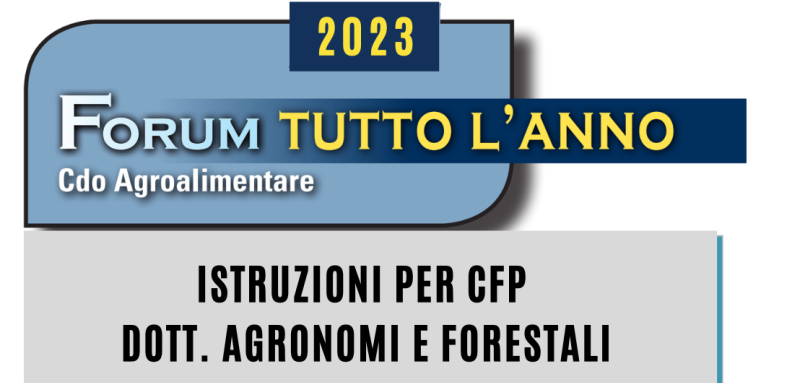 AVVISO PER DOTTORI AGRONOMI E FORESTALI: La Rassegna Forum Tutto l'anno del 16 Marzo è accreditata per il riconoscimento dei Crediti formativi Professionali per i Dottori Agronomi e Forestali . L’attribuzione dei crediti sarà fatta direttamente da CESAR - agenzia formativa accreditata- nel portale CONAF...